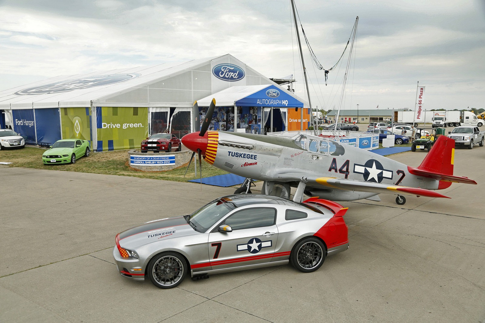 The Blue Oval's engineering and design teams have developed a one-of-a-kind "Red Tails" edition of the 2013 Ford Mustang GT Coupe, the styling of which was inspired by World War II squadron of African American P-51 Mustang fighter airplanes.The one-off creation will go under the hammer at the Gathering of Eagles charity auction on July 26 during the Experimental Aircraft Association (EAA) AirVenture Oshkosh 2012.